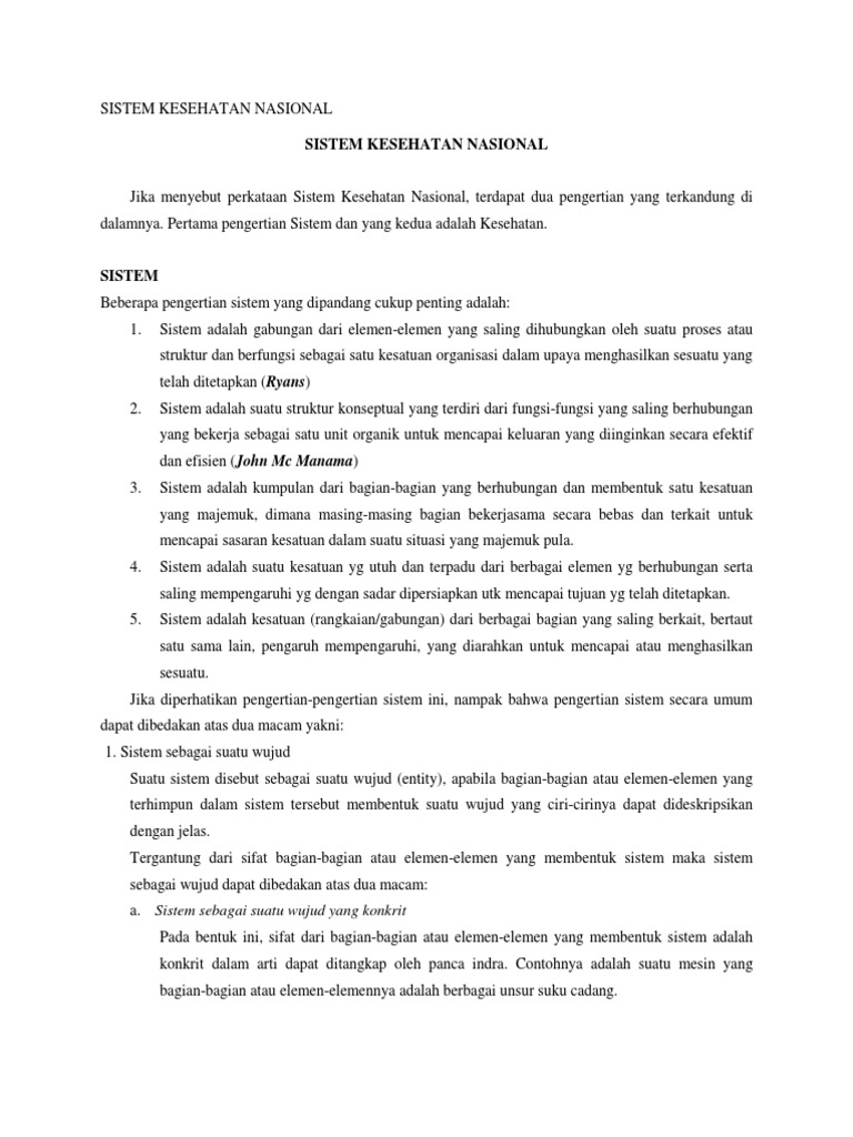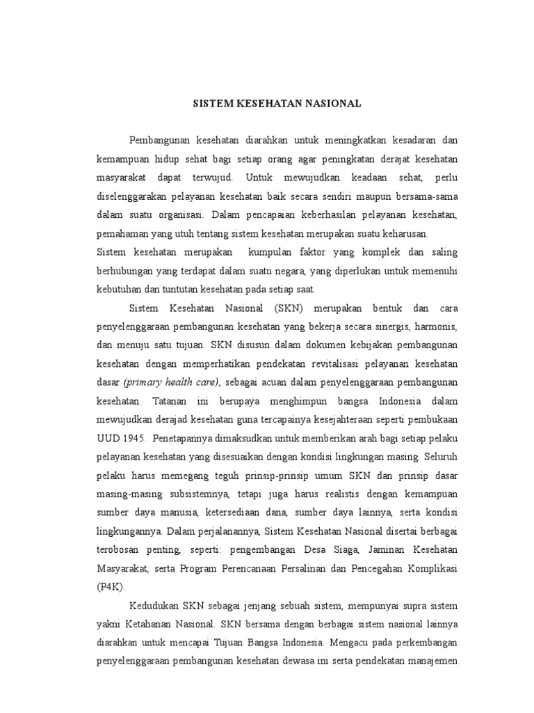 Analisis situasi dan kecenderungan sistem kesehatan nasional. Dian kusuma, skm, mph dan aini gandhi, dr, m.kes mata kuliah: Sistem pendidikan nasional untuk meningkatkan keimanan dan ketakwaan kepada tuhan yang maha esa sistem pendidikan nasional harus mampu menjamin pemerataan kesempatan pendidikan, peningkatan baca juga: Definisi operasional data dasar tabel 1 definisi operasional desa : Dasar hukum sistem kesehatan nasional sistem kesehatan nasional terus menerus mengalami perubahan sesuai dengan dinamika yang terjadi di masyarakat. Skn adalah pengelolaan kesehatan yang diselenggarakan oleh semua komponen bangsa indonesia secara perpres no. Masyarakat sebagai peserta jaminan kesehatan nasional yang diselenggarakan oleh bpjs kesehatan dan stakeholder terkait tentu perlu mengetahui prosedur dan kebijakan pelayanan v hal yang perlu diperhatikan dalam sistem rujukan berjenjang. Subsistem sdm kesehatan • nakes = semua org yang bekerja aktif dan profesional di bidang kes, baik yang. Problematika sistem jaminan kesehatan nasional. Program jaminan kesehatan diselenggarakan secara nasional. 2 tahun 2012 à sistem kesehatan nasional. I definisi dan ketentuan umum. Organisasi pembiayaan organisasi pelayanan sistem kesehatan mutu pelayanan dan.